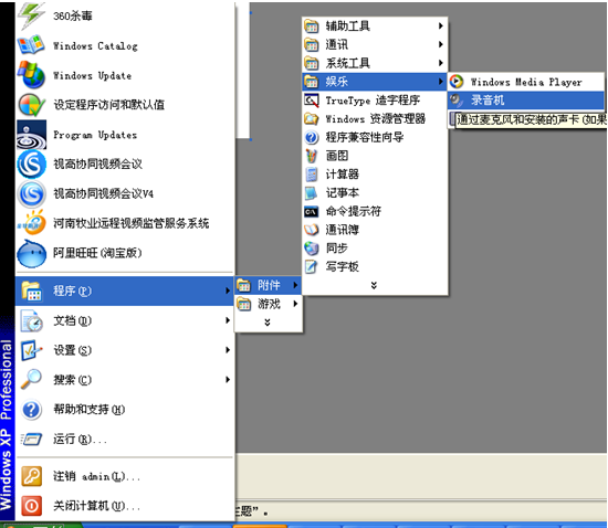 原因2、設備連接有問題,測試方式如下圖,從“開始”菜單打開“錄音機”